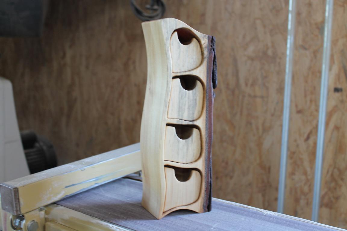 Das besondere Accessoires aus dem Hause „Holzdesign Zaus“. Alle Holzkästchen haben einen bzw. mehrere eingelassene Schübe, die Platz bieten für allerlei Dinge: Schmuck, Streichhölzer, Handys, Medizin, Kabel, Zettel, Büroklammern, Bleistiftspitzer, Stifte, Nähgarn, Nähnadeln, Schlüssel, Schrauben, USB-Sticks, iPods, und vieles vieles mehr. Natürlich perfekt als Geschenk, oder um im eigenen Heim Design-Akzente mit hohem Nutzwert zu setzen. Diese Kästchen ist aus Pappel und hat die Maße: 8cm x 6cm x 24cm